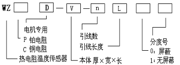 注:對厚度是2mm的,如上例可以省略表示為:WZPD-10×60-3D-1-Pt100。