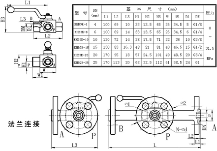 KHB3K型高壓三通球閥是依據(jù)國外資料研制而成,主要用于液壓管路中控制油液、氣的流通、流向和截止。本系列高壓多路球閥具有流阻損失小、密封性能可靠、操作方便、外觀精美等特點。本系列多路球閥主要由閥體、球體、閥桿、手柄和密封裝置等組成。閥體采用鋼質(zhì)鍛件,表面鍍鉻。同時也提供不銹鋼球閥。本系列高壓球閥主要有二種連接方式:內(nèi)螺紋連接、法蘭連接。